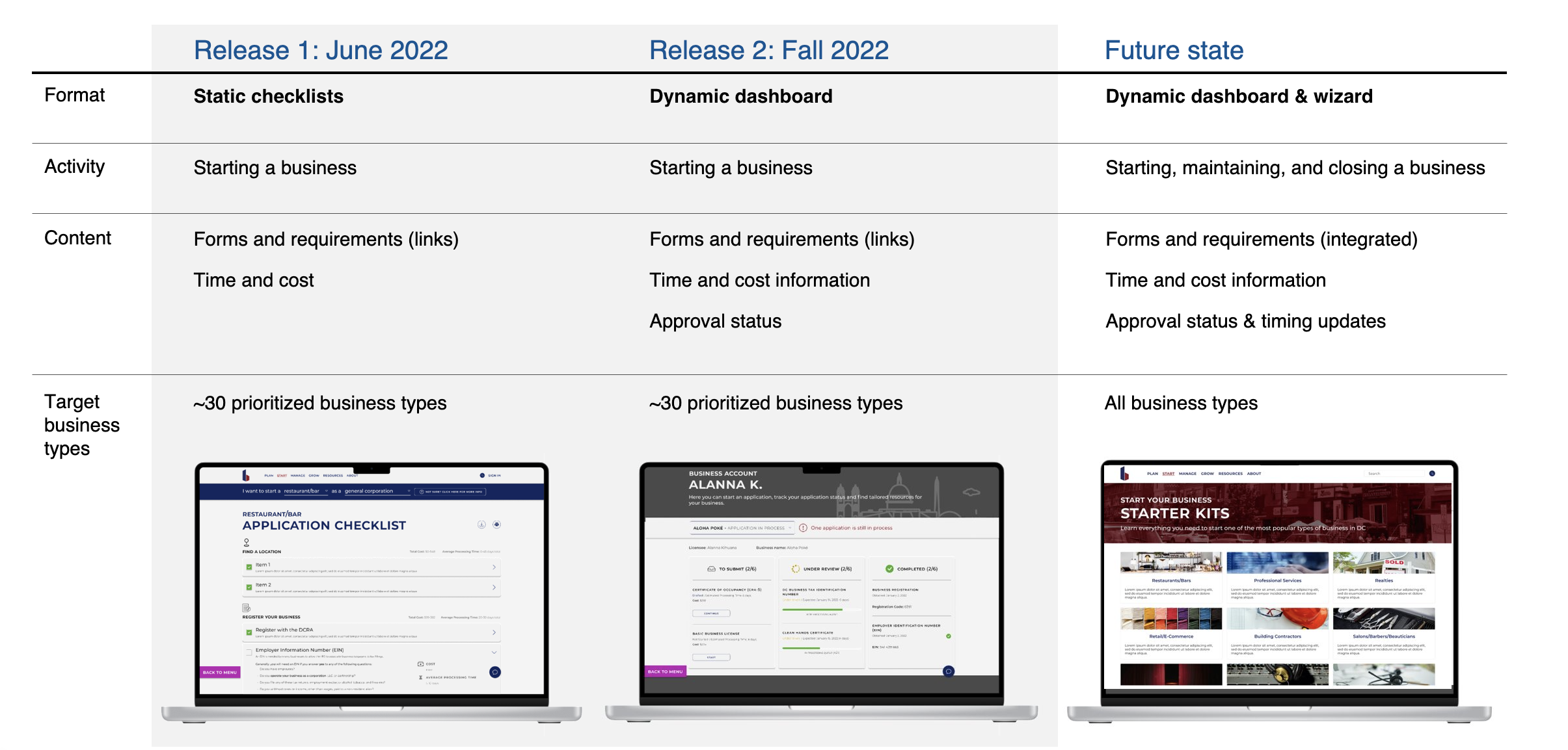 We aspire to make DC is the #1 place in the nation to launch a business where entrepreneurs can start and maintain a business seamlessly, thanks to a "one stop" business portal that helps business owners navigate the process of business ownership and support them each step along the way.
